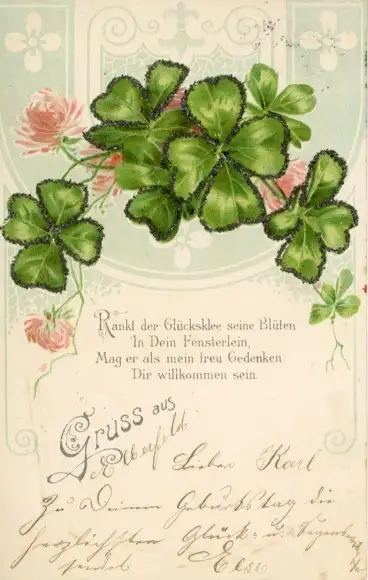 Glitzer Litho Glücksklee, Blumen, Kitsch