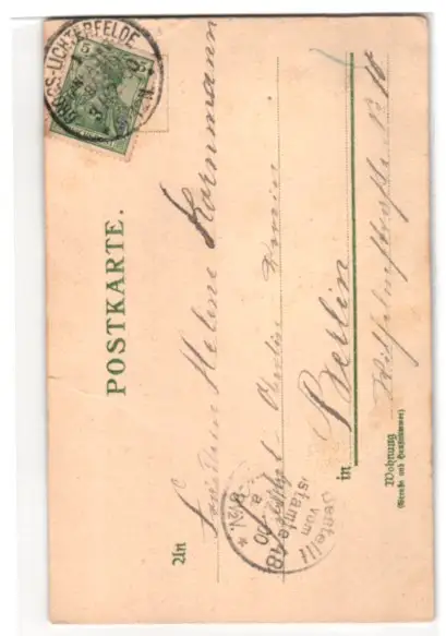 alte Ansichtskarte, gelaufen 1900, Eckknick und Einriss re. oben, guter Zustand