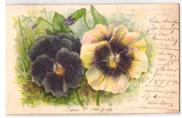 Glitzer-Perl-AK Blühende Stiefmütterchen