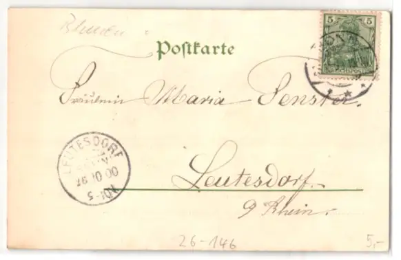 alte Ansichtskarte, gelaufen 1900, guter Zustand
