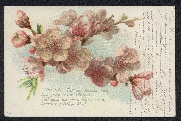 Glitzer-Perl-AK Blühender Zweig mit Glitzer-Perlen