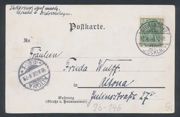 alte Ansichtskarte, gelaufen 1900, Ecken bestoßen, sonst guter Zustand