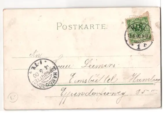 alte Ansichtskarte, gelaufen 1900, Stecknadelloch li. oben, guter Zustand