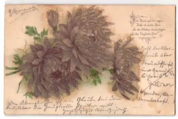 Glitzer-Perl-AK Dunkle Astern mit Glitzer-Perlen