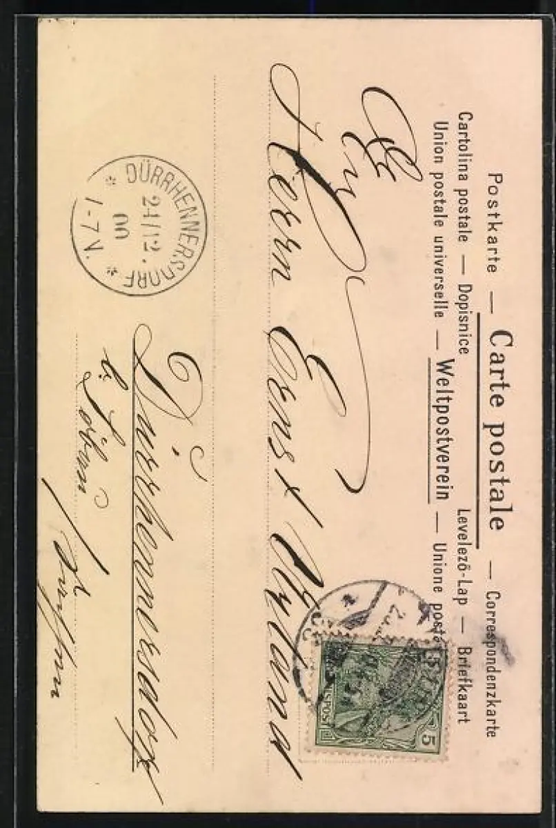 alte Ansichtskarte, gelaufen 1900, guter Zustand