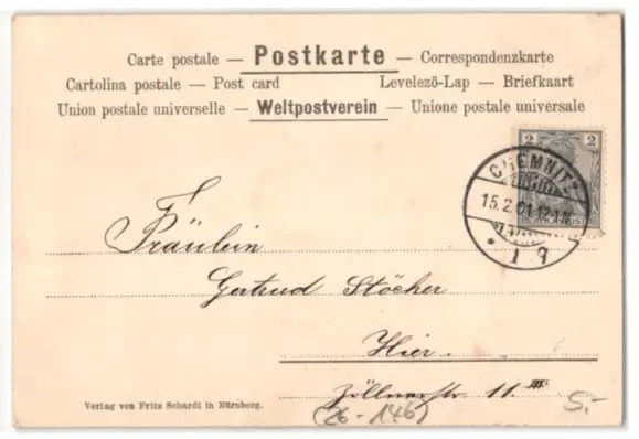 alte Ansichtskarte, gelaufen 1901, guter Zustand