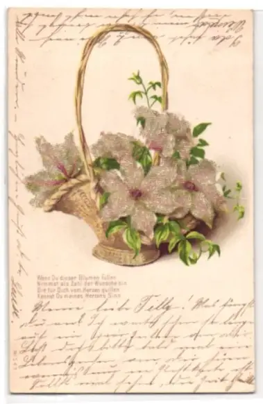 Glitzer-Perl-AK Helle Blumen mit Glitzer-Perlen im Korb