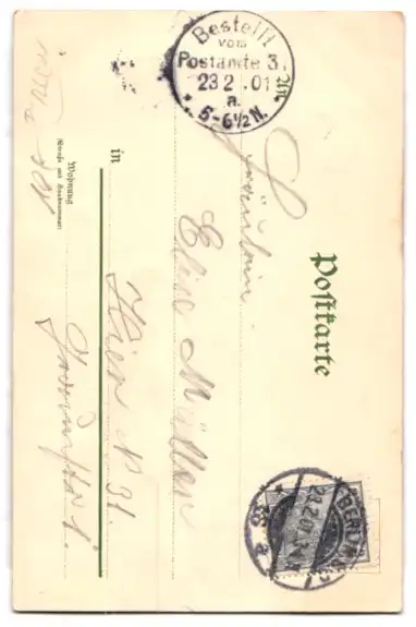 alte Ansichtskarte, gelaufen 1901, kleiner Einriss unten mittig, Eckknicke li., guter Zustand
