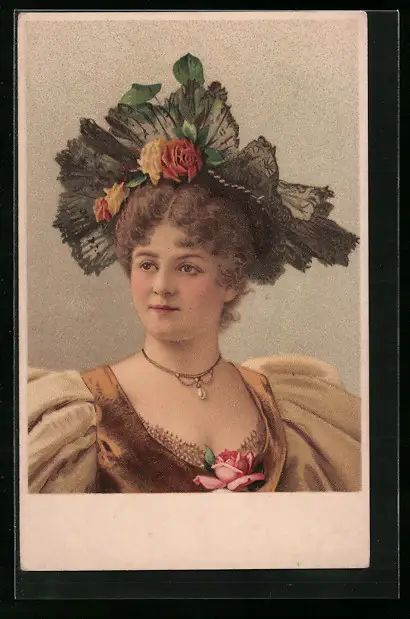 Glitzer-Perl-AK Mädchen in Tracht, Haube