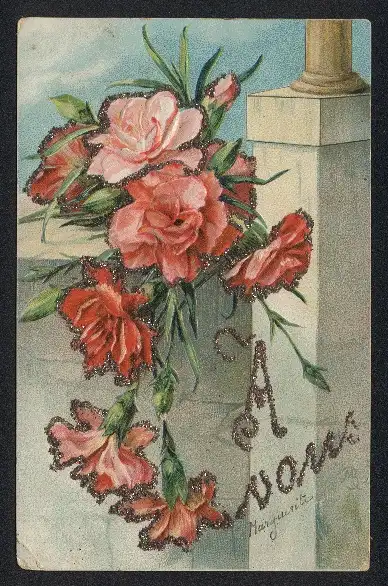 Glitzer-Perl-AK Nelkenstrauss verziert mit Glitzer-Perlen