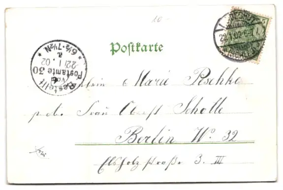 alte Ansichtskarte, gelaufen 1902, guter Zustand