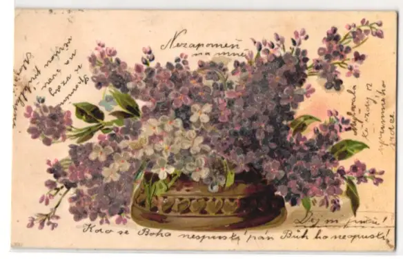 Glitzer-Perl-AK Veilchen in Steingutvase