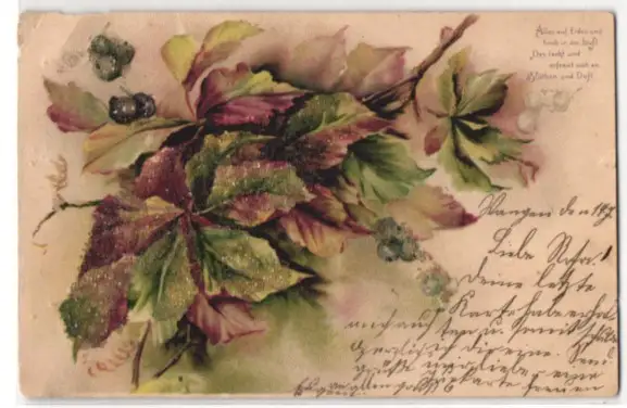 Glitzer-Perl-AK Zweige mit Blättern und Früchten