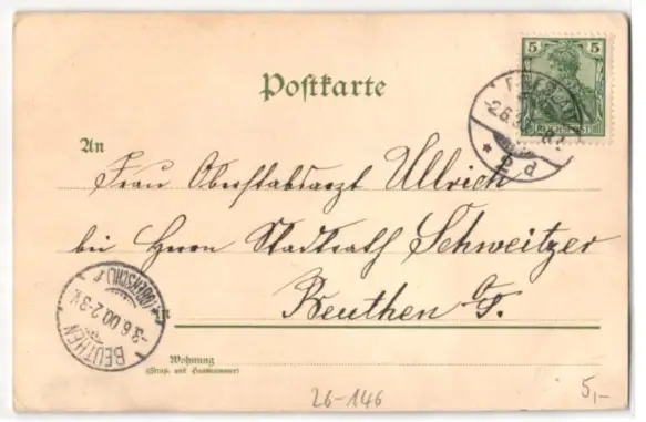 alte Ansichtskarte, gelaufen 1900, guter Zustand