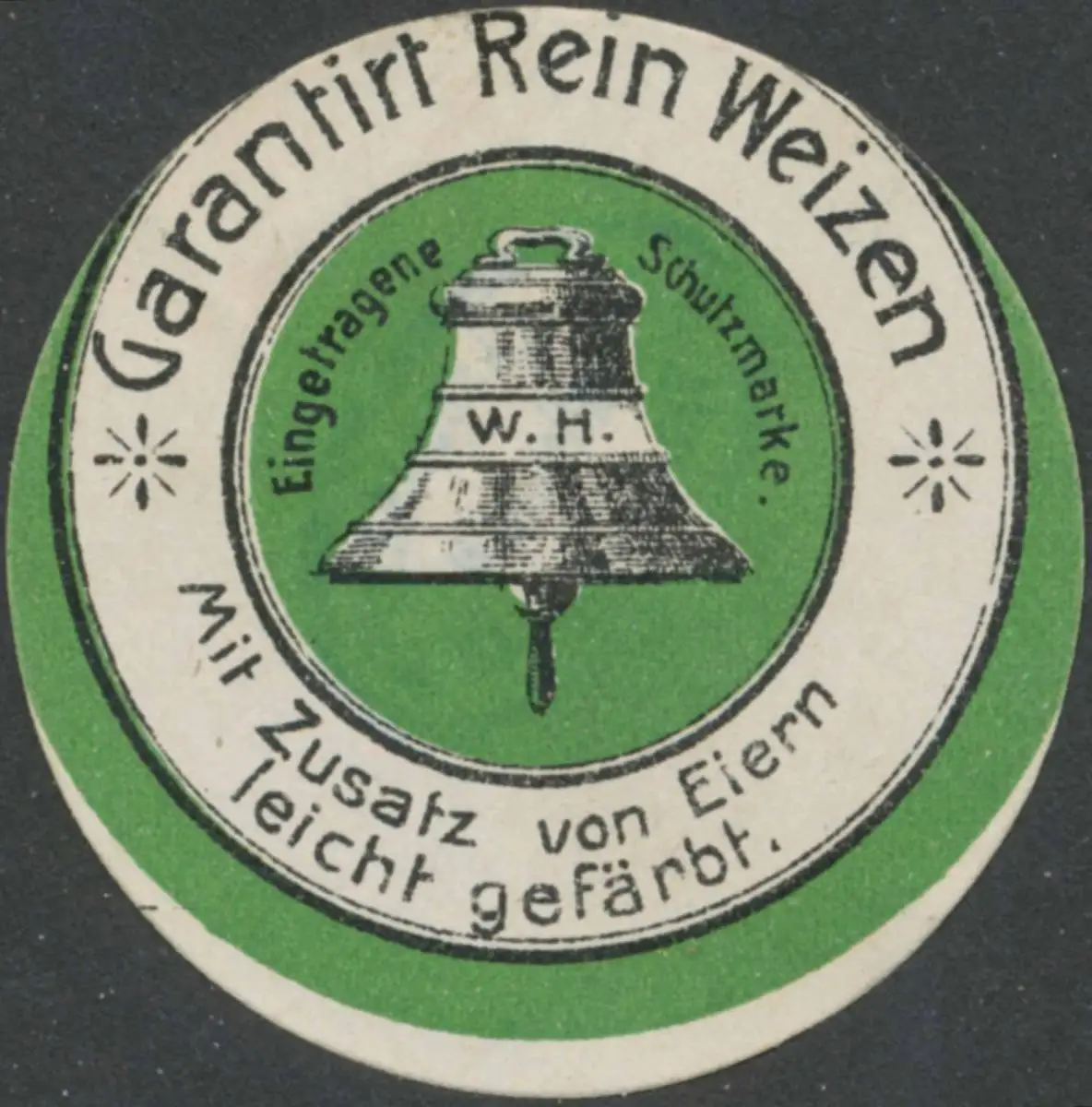 Glocke, Weinheim, Erste Badische Teigwarenfabrik Wilhelm Hensel GmbH, Rückseite mit Händlerstempelabdruck, Theresienstraße 45, Größe/Zustand: 5 , guter Zustand, Original alte Reklamemarke die seinerzeit für die Werbung benutzt wurde