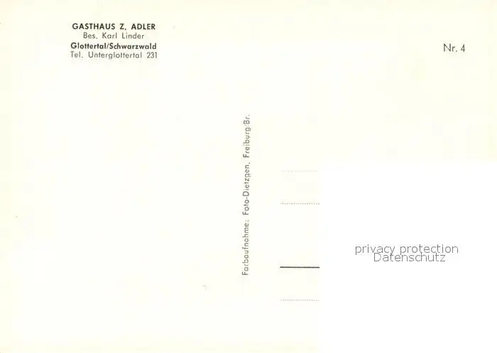 Glottertal Gasthaus zum Adler Gaststube Glottertal postalisch nicht gelaufen nach 1965 Erhaltung siehe scans [WerneD78] WernPID7