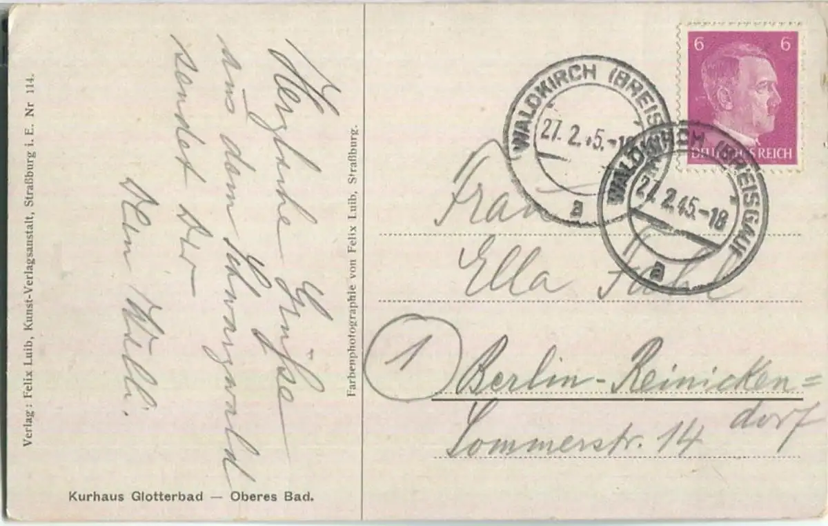 Glottertal - Kurhaus Glotterbad - Verlag Felix Luib Straßburg (G52060) gel. 1945