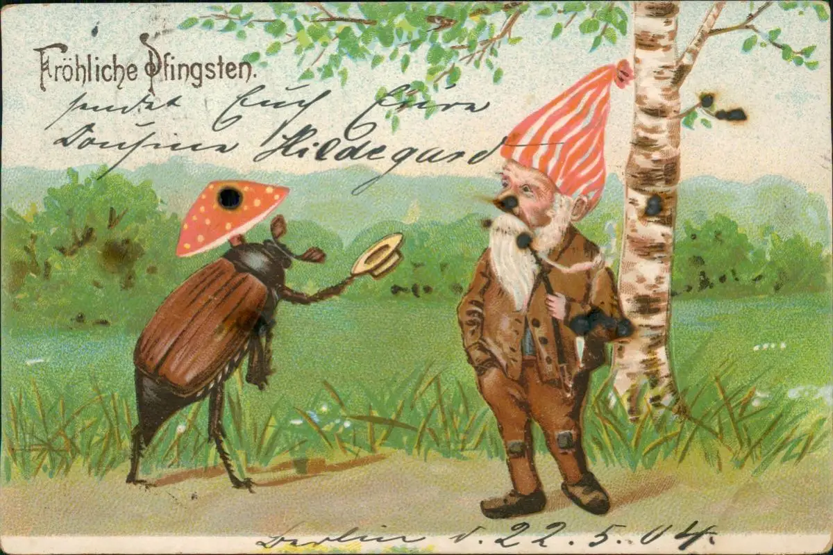 Glückwunsch: Pfingsten Zwerg Pfingstkäfer mit Fliegenpilz 1904