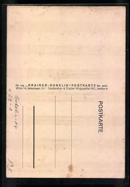 Personenbezogene Daten auf der Rückseite der Karte wurden durch blauen Textmarker unkenntlich gemacht. Die blauen Stellen sind auf die Vorderseite durchgeweicht und wirken sich negativ auf das Postkartenfoto aus