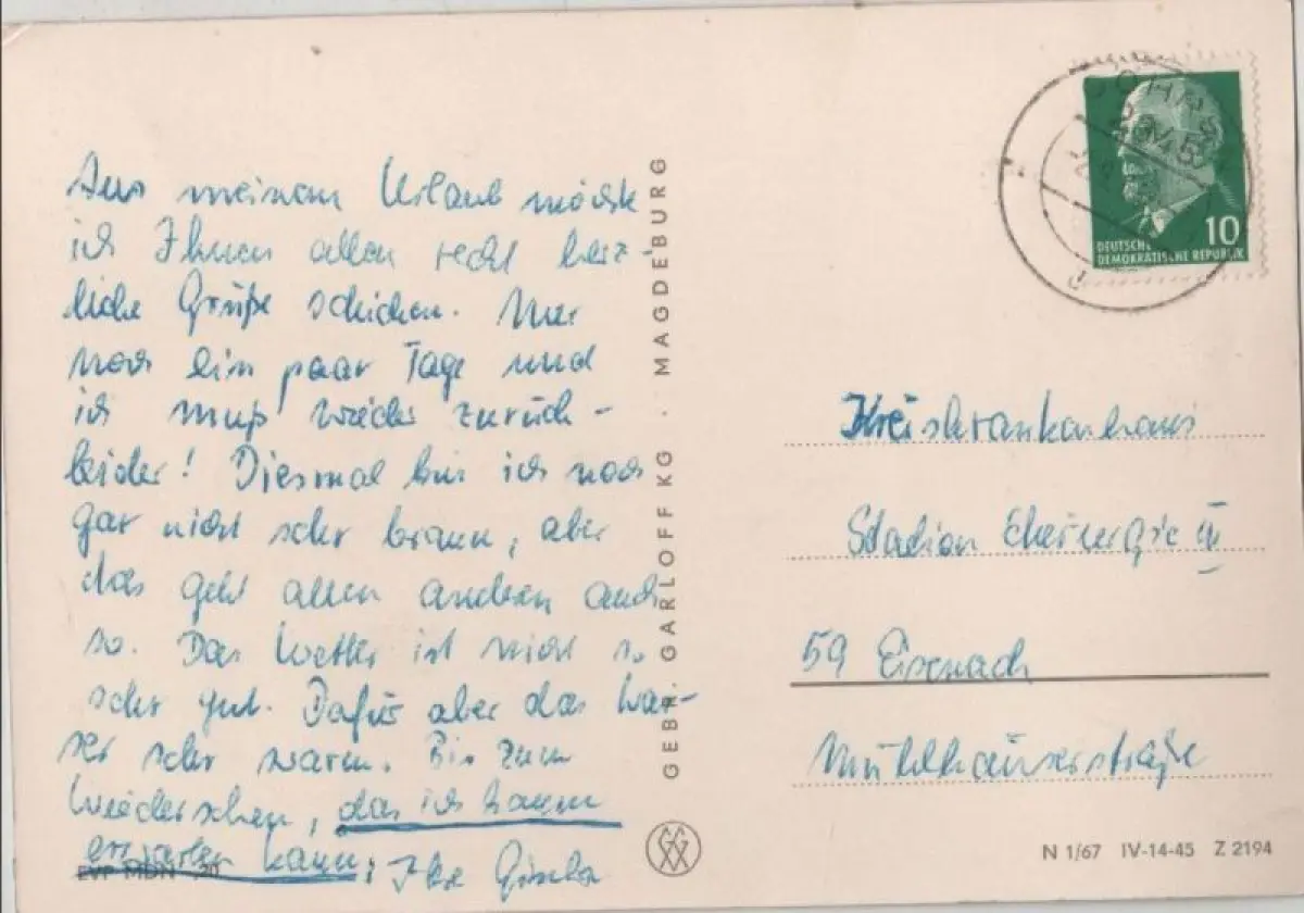 kleine Beschädigung linksPostleitzahl:18586 (neu) / O 2345 (alt)