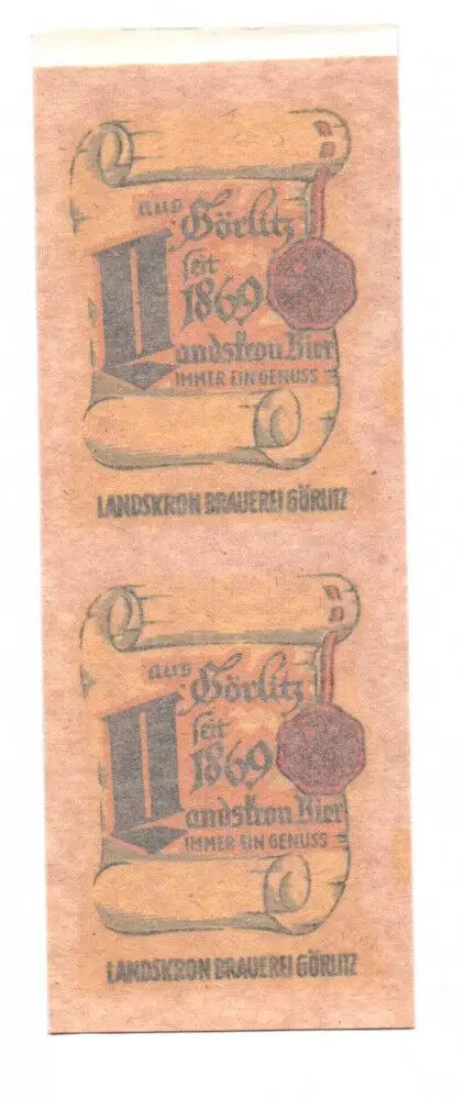 Ein originaler Bogen mit zwei Abziehbildern, der Landskron Brauerei Görlitz.