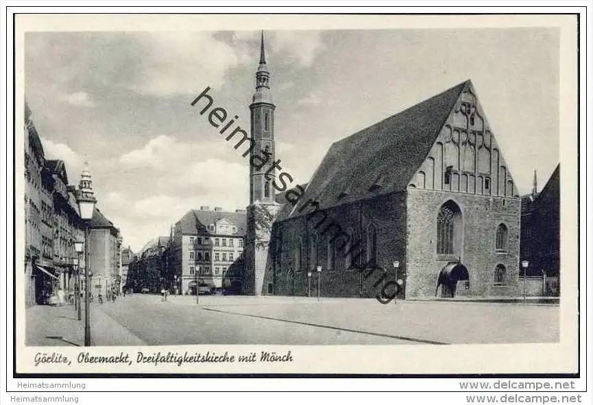 Görlitz - Obermarkt - Dreifaltigkeitskirche mit Mönch 50er Jahre (G22676)