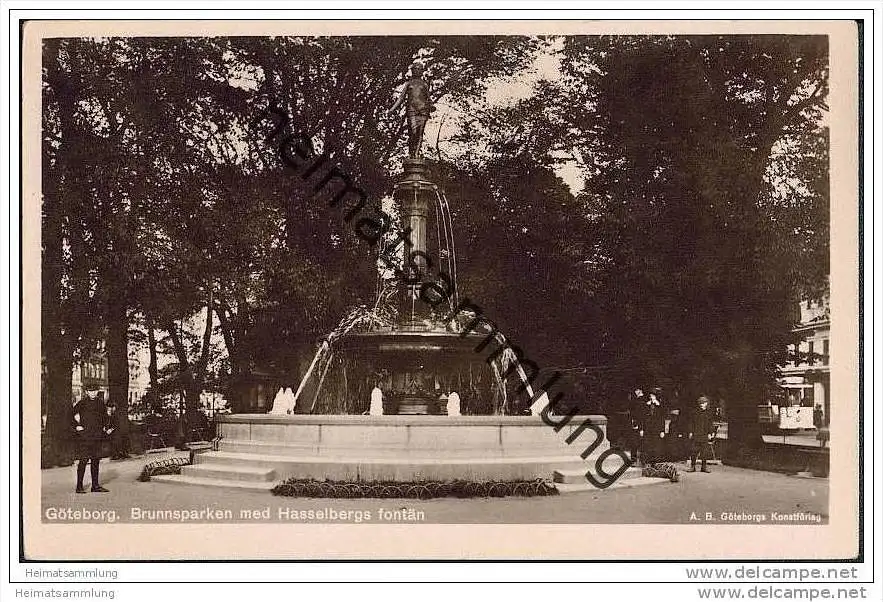 Göteborg - Brunnsparken med Hasselbergs fontän - Foto-AK ca. 1930