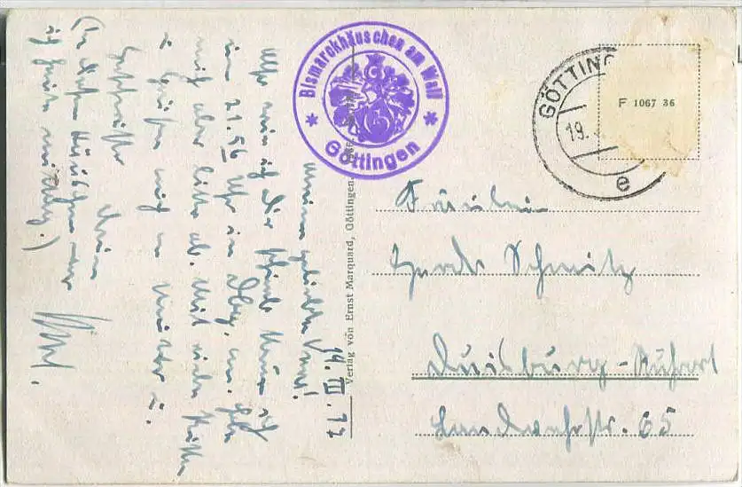 Göttingen - Bismarcks Studentenwohnung - Verlag Ernst Marquard Göttingen - Marke entfernt (E38123) gel. 1937