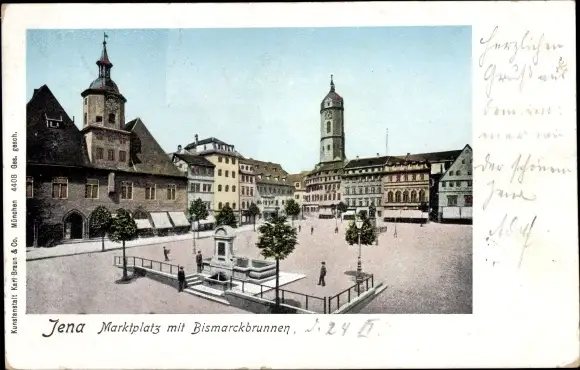 Golden Windows Ak Jena in Thüringen, Marktplatz mit Bismarckbrunnen