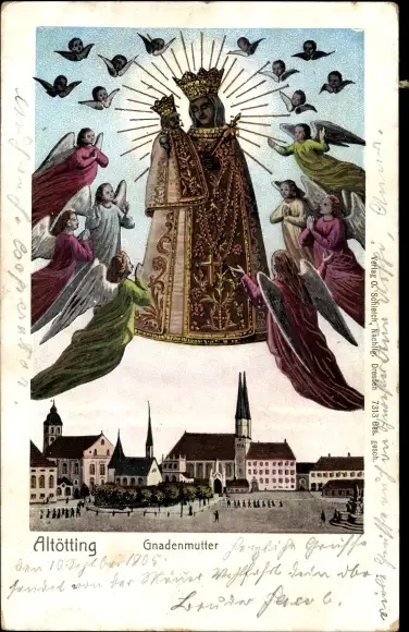 Golden Windows Leuchtfenster Ak Altötting in Oberbayern, Gnadenmutter