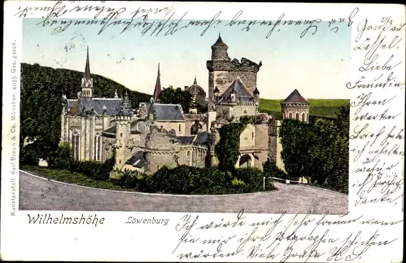 Golden Windows Leuchtfenster Ak Bad Wilhelmshöhe Kassel in Hessen, Löwenburg