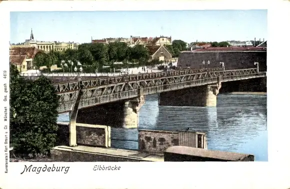 Golden Windows Leuchtfenster Ak Magdeburg an der Elbe, Elbbrücke