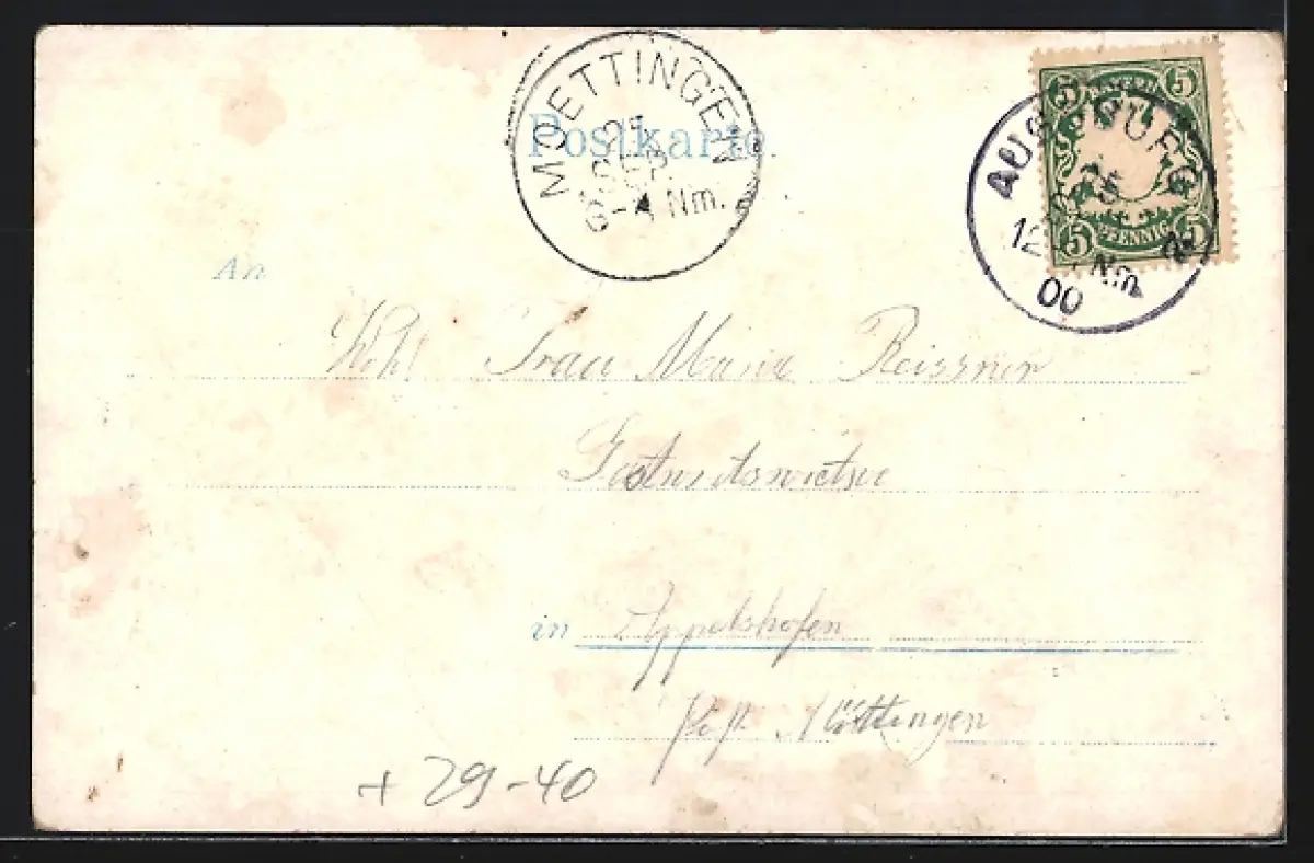 alte Ansichtskarte, gelaufen 1900, Eckknick oben li., Stempelspur, guter Zustand