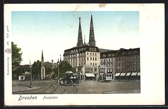 Goldfenster-AK Dresden, Blick auf den Postplatz
