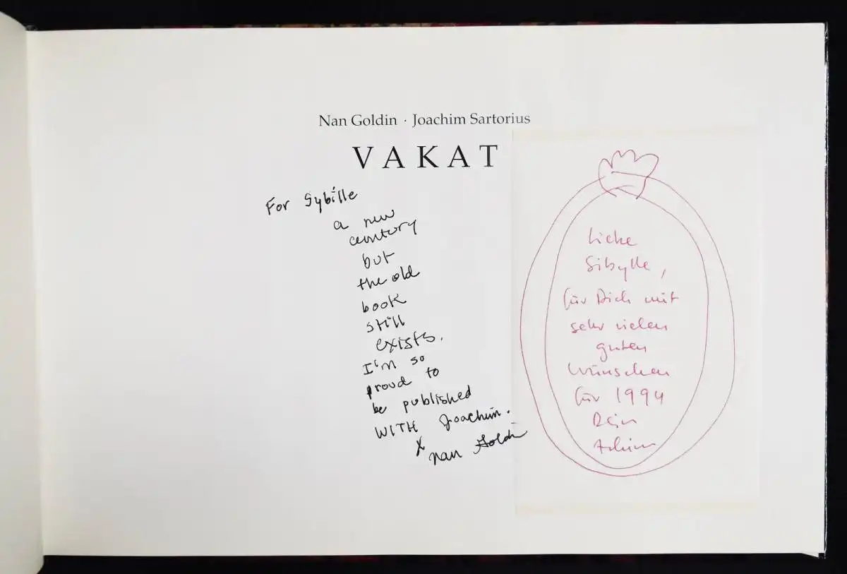 eigenhändigen Widmungen von Nan Goldin „For Sybille a new century but