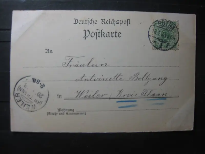 ca. 1898; Unschärfen, Spiegelungen, Verbiegungen sind allein durch das abfotografieren bedingt; Karte ist beidseitig abgebildet, Erhalt siehe Scan; ist das Foto qualitativ nicht aussagekräftig genug, kann es besseres Foto angefordert werden. Rückgabe bei Karten ist generell ausgeschlossen.