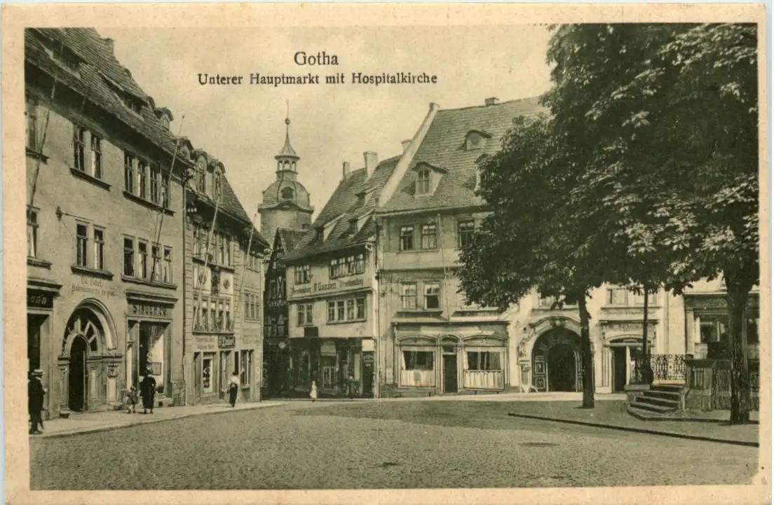 Gotha, Unterer Hauptmarkt mit Hospitalkirche -518558