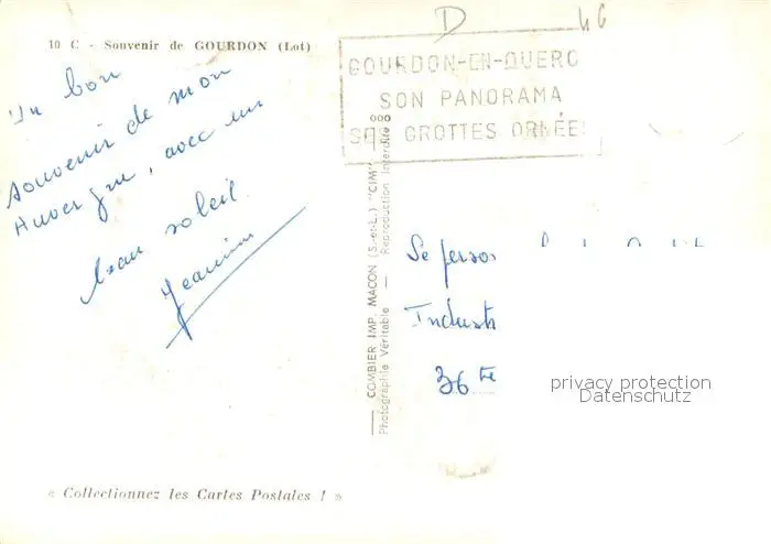 Gourdon_Lot Vue générale Eglise Bâtiments centre ville Gourdon Lot postalisch gelaufen 1921-1965 Erhaltung siehe scans [FriedD77] Frierer