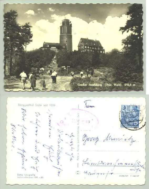 Artikelbeschreibung u. Zustand : Siehe Scan. Weitere Infos : Ansichtskarte. Grosser Inselberg / Berggasthaus Stoehr. PLZ-Bereich pauschal 99817. Postalisch gelaufen 1957
