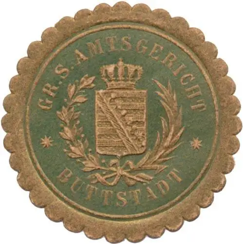 gold, grün, geprägt, Größe/Zustand: 4 , guter Zustand, Original Verschluss-Siegelmarke aus Papier welche früher von Behörden, Firmen etc. zum Versiegeln der Briefe benutzt wurden