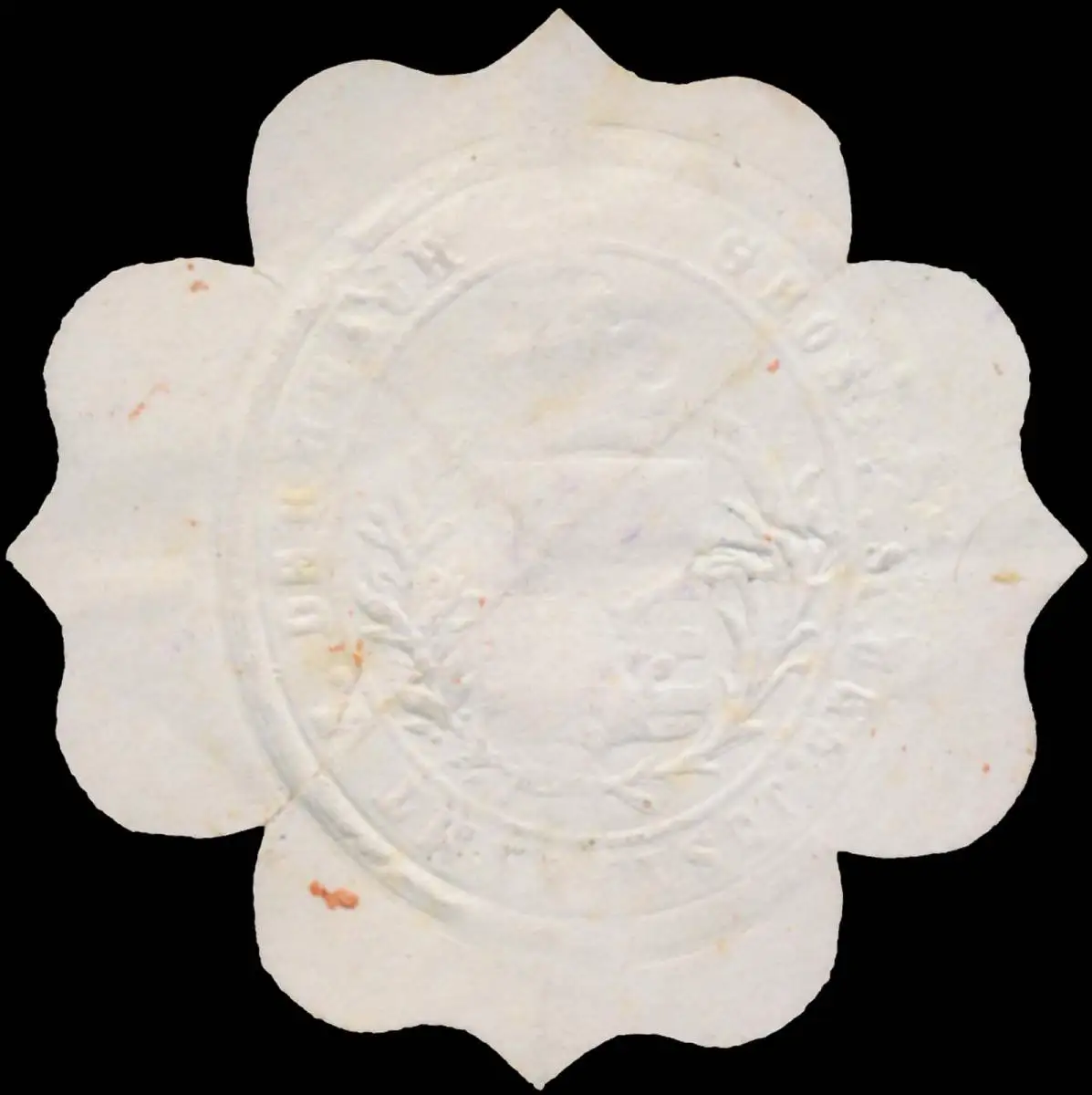 weiß, geprägt, Größe/Zustand: 5x5 , beschädigt, Original Verschluss-Siegelmarke aus Papier welche früher von Behörden, Firmen etc. zum Versiegeln der Briefe benutzt wurden