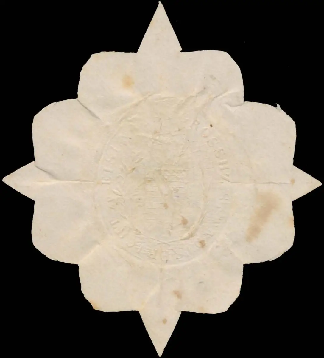 weiß, geprägt, Größe/Zustand: 6x6 , beschädigt, Original Verschluss-Siegelmarke aus Papier welche früher von Behörden, Firmen etc. zum Versiegeln der Briefe benutzt wurden
