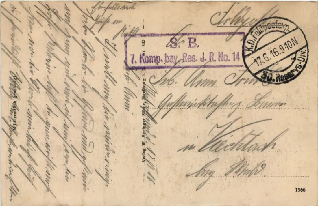 Grananteinschlag - Feldpost Bay. Res. Inf Regiment 14 -617306