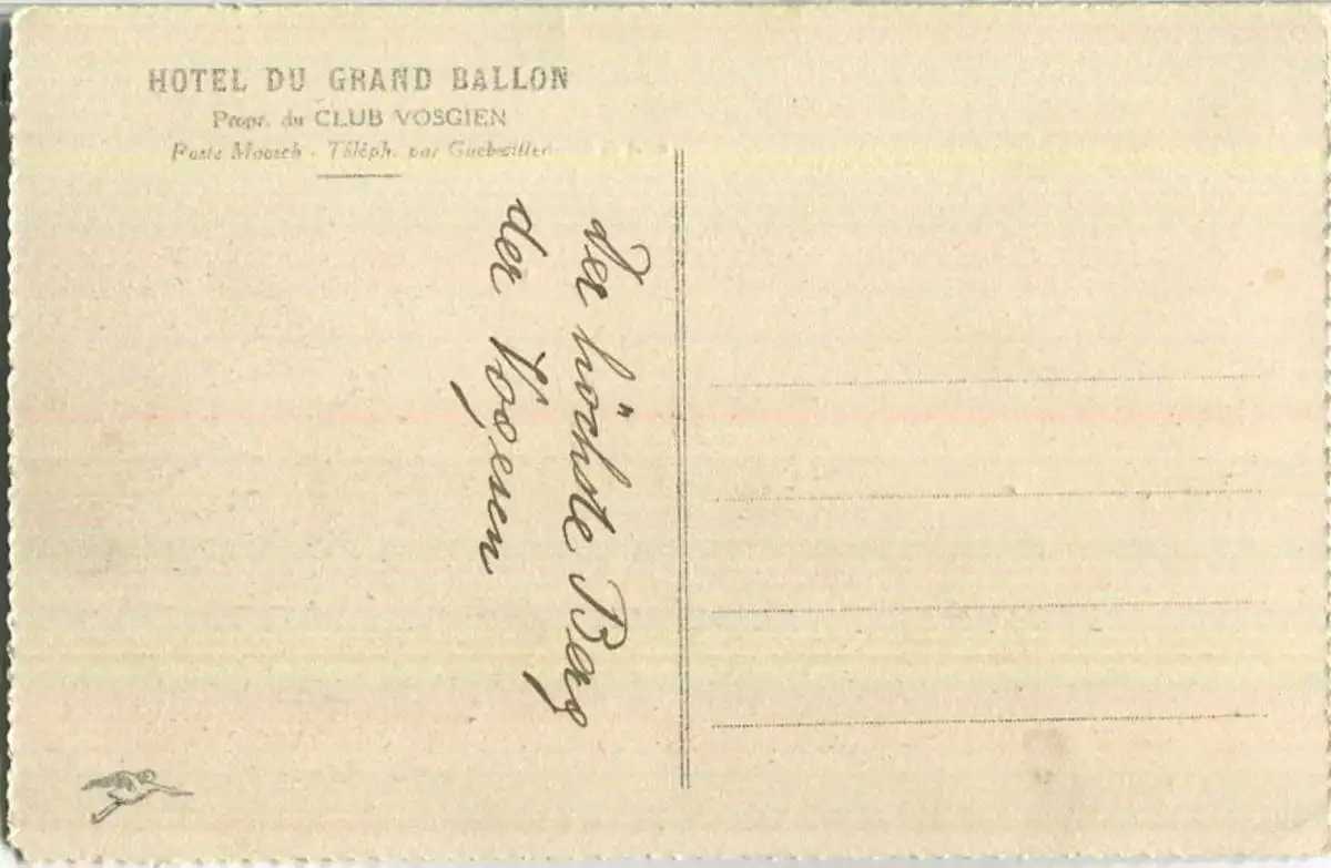 Grand Ballon - Hotel du Grand Ballon Propr. du Club Vosgien - Rückseite beschrieben (G6184) *