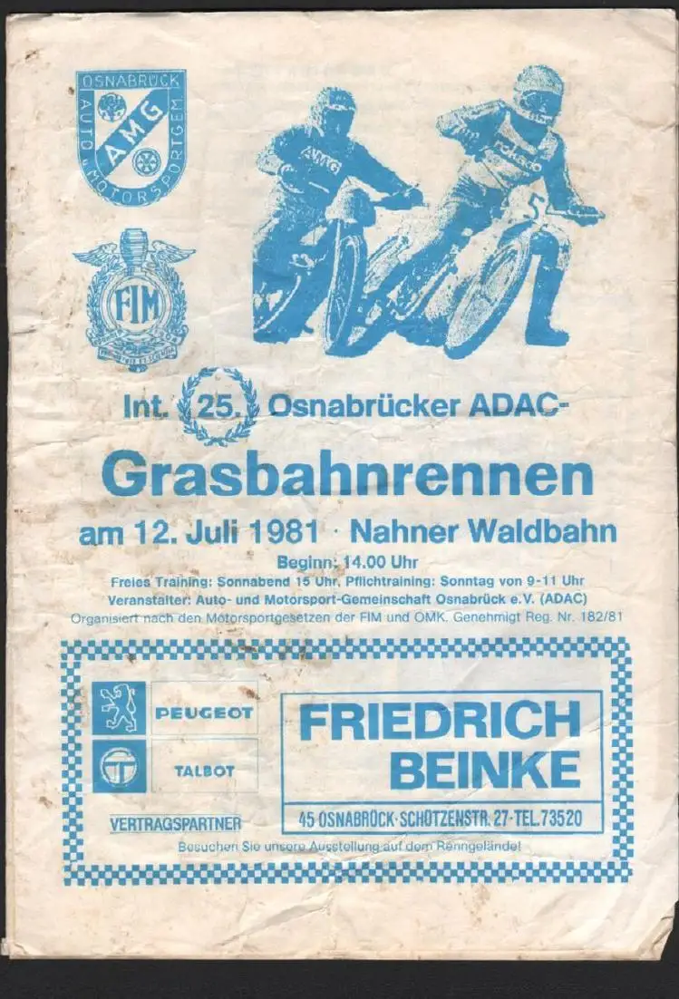 Grasbahnrennen Osnabrück 12.07.1981 , Speedway , Programmheft / Programm / Rennprogramm !!!