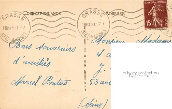 Grasse_Alpes_Maritimes Vue entre les palmiers Grasse_Alpes_Maritimes postalisch gelaufen 1930 Erhaltung siehe scans [FriedD77] Frierer