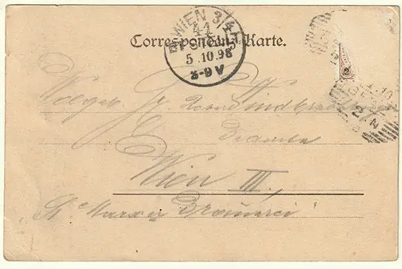 Bemerkungen: Gelaufen 1898. Briefmarke fehlt.