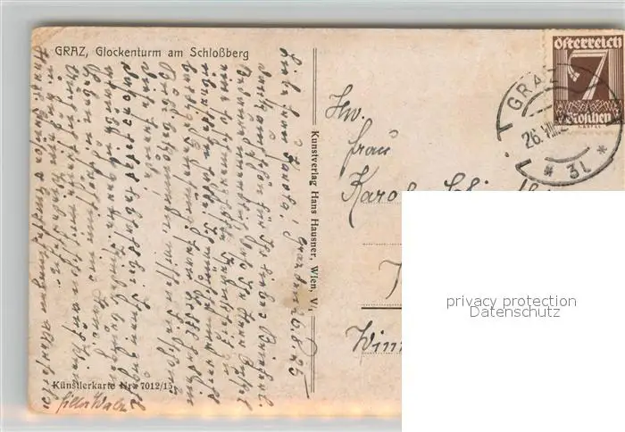 Graz_Steiermark Glockenturm Schlossberg Graz_Steiermark postalisch gelaufen 1925 Erhaltung siehe scans [PaolaD17] PaolPID1