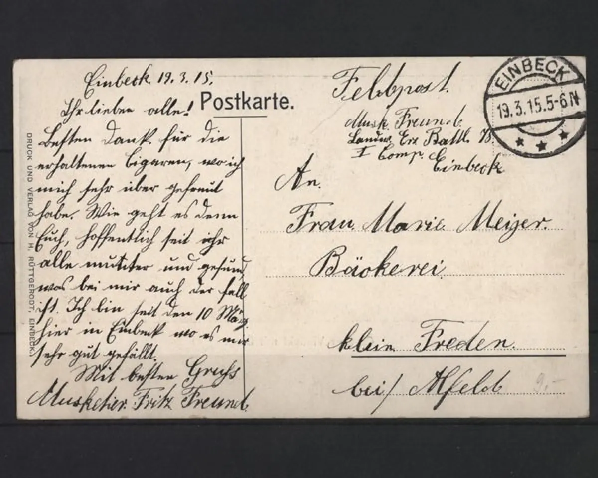 Karte 1915 gelaufen, Ecken leicht bestoßen, sonst gute Erhaltung PLZ 37547