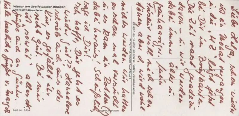 Ich hatte die Rechnung sofort als Vorkasse bezahlt, aber keine Zusendung der Karte erhalten. Trotz Nachfrage keine Rückmeldung bzw. Erklärung. Da es sich zum Glück nur um 1,70 € handelt, ist die Sache für mich erledigt, ärgerlich, aber zu verkraften. Mit den drei anderen Karten, die ich bestellt hatte, hat alles wunderbar geklappt.